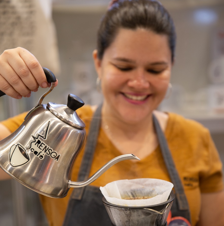 O barista que trabalha junto com Sylvia, Guilherme Henrique, fez o curso de guia de turismo no Senac. “Trabalhei em várias áreas do turismo, em agenciamento e como guia de turismo. Quando entrei na faculdade a minha intenção era ir pra área da gastronomia, mas lá fui conhecendo outras áreas do turismo e fui me apaixonando, mas nunca deixei a gastronomia e fui um pouco para o lado do café e da coquetelaria, que são áreas afins. Hoje em dia com a variedade de cafés que temos, conseguimos criar várias bebidas dependendo das notas que cada café dá, como por exemplo com notas mais frutadas, notas de chocolate e de rapadura. Assim, foi muito importante a formação que tive no Senac para conseguir crescer e me aperfeiçoar cada vez mais nessa área”, relata.