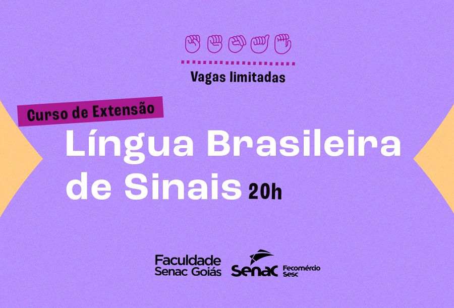 A Faculdade Senac está com inscrições abertas para o curso de extensão em Introdução à Língua Brasileira de Sinais (Libras). As aulas serão ministradas aos sábados entre os dias 29 de abril e 27 de maio gratuitamente, das 9 às 13 horas. Docentes, discentes e servidores administrativos da Faculdade Senac, além de toda comunidade externa podem se inscrever. É necessário preencher o formulário para a inscrição clicando aqui. O prazo para inscrição será encerrado no dia 24 de abril, às 18 horas. As aulas serão ministradas presencialmente na Faculdade Senac, no setor Santa Genoveva.