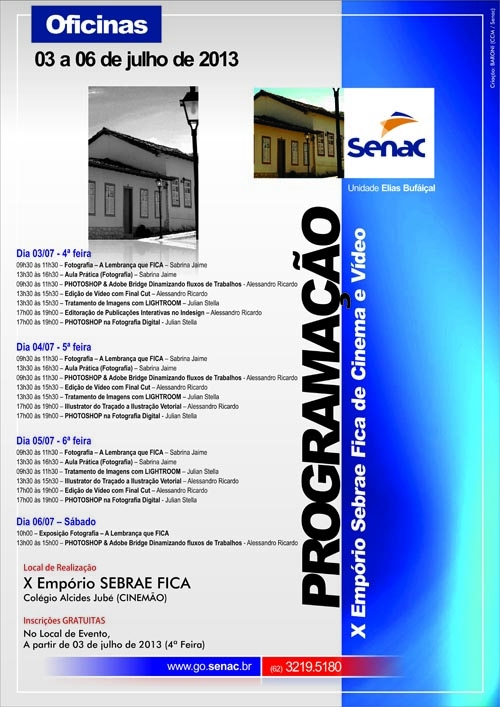 Mais informações da participação do Senac Elias Bufáiçal no X Empório Sebrae Fica de Cinema e Vídeo: (62) 3219-5180