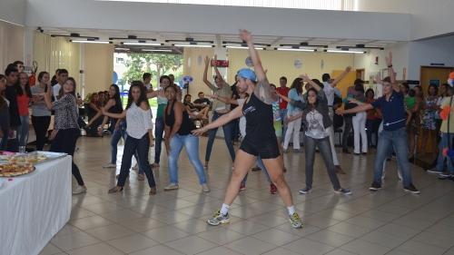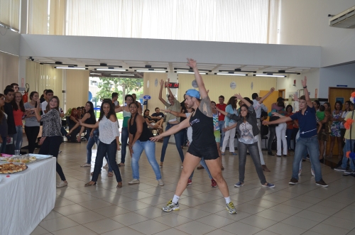 Reunidos para parabenizar as conquistas do Senac Aparecida de Goiânia, que completou 10 anos de atuação da educação profissional, no dia 30, servidores, alunos e comunidade festejaram a data. A programação contou com serviço de maquiagem durante todo o dia e uma solenidade com direito a bolo e parabéns. Outra atração da programação foi também uma aula de dança com o professor Michel Castro, da academia Fitness Sensation.