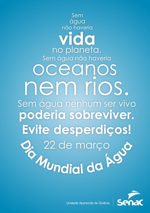 Sem água não haveria vida no planeta! Sem água nem um ser vivo habitaria a terra! Sob essa perspectiva e ainda com um olhar crítico para os nossos hábitos, nenhum esforço para cuidar desse bem precioso é demasiadamente um sacrifício ou algo a ser ignorado. Em respeito a sua importância, no dia 22 de Março é comemorado o Dia Mundial da Água, que não representa uma data comemorativa que visa lucros financeiros, mas sim uma conscientização acerca da utilização e valorização desse recurso natural.