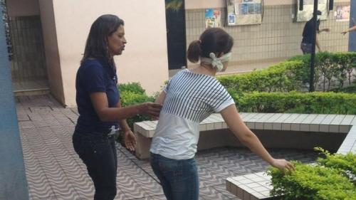 A turma de 20 alunos do curso Design de Interiores do Senac Elias Bufáiçal percorreram o hall, banheiros e instalações da unidade e tiveram a experiência de pessoas que possuem deficiência visual, física ou dos idosos que necessitam do uso de auxílio motor.