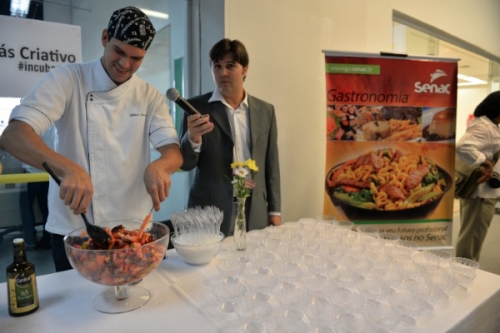 O Senac de Aparecida de Goiânia participou, nesta terça-feira (26), da inauguração da Incubadora Goiás Criativo, através da oficina Mistura Criativa, ministrada pelo instrutor de gastronomia, Willian Bernardes. A participação do Senac na Cozinha Show atraiu os olhares de vários participantes do evento que puderam degustar uma das receitas, a de salada de frutas.
