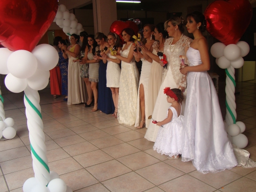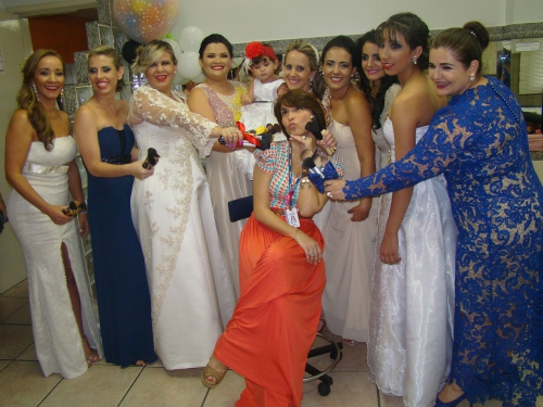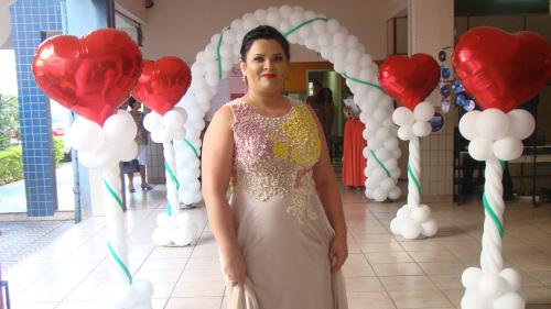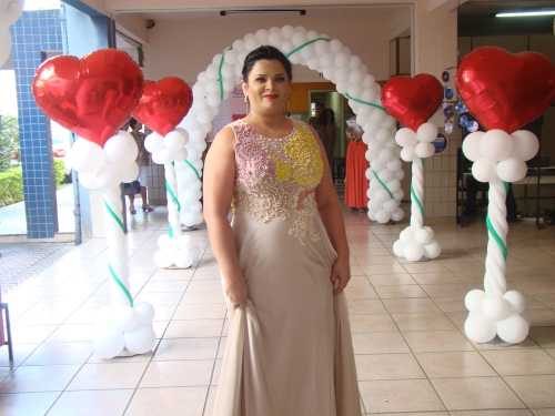 Os vestidos usados pelas alunas foi uma parceria com a loja Zade Locações e a decoração composta pela instrutora do curso de Decoração com Balões, Cristiane Wanessa.