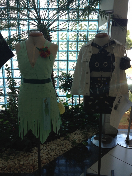 Os alunos do 3º módulo do curso Técnico em Moda (noturno), sob a orientação da instrutora Telma Guedes, exploraram a criatividade que resultou em uma exposição de moda com tema O luxo do lixo.