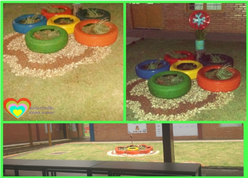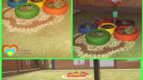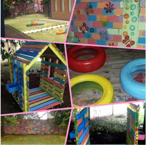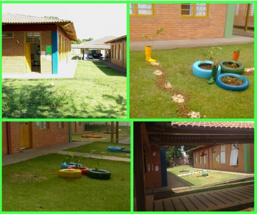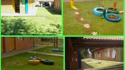 Os alunos, com a supervisão do instrutor do Senac, Gláucio Bianchetti do Amaral, realizaram a reforma da área externa do local com materiais reciclados, como pneus.