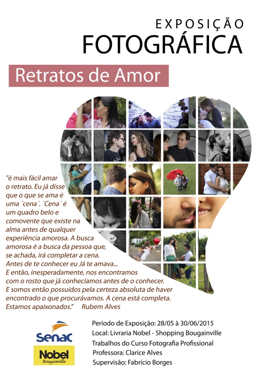 A maioria das fotos que compões a Exposição Retratos de Amor (título inspirado no livro de Rubem Alves), foi desenvolvida durante uma aula prática sobre Fotografia de Casais, que teve como cenário o Parque Mutirama. Os alunos trabalharam em grupos e se responsabilizaram por toda a produção do ensaio, contratação da maquiagem, apetrechos para incrementar as produções, entre outras coisas.