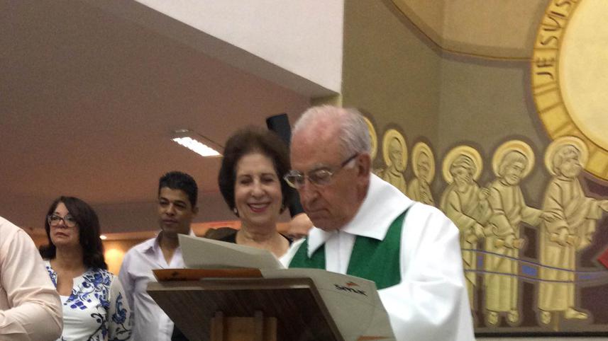 do acordo, além da equipe de representantes da paróquia, a diretora regional do