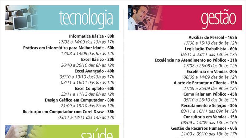 no total, 25 cursos nos segmentos: beleza, comércio, gestão, hospitalidade,