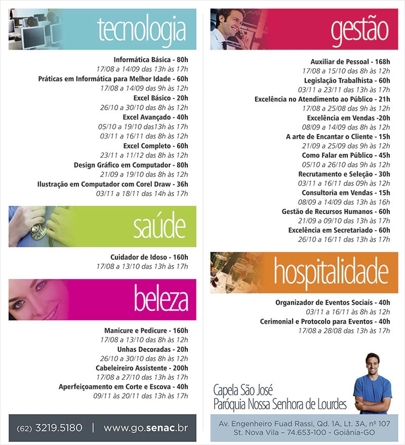 agosto (quarta-feira), no Senac Cora Coralina e as aulas estão previstas para