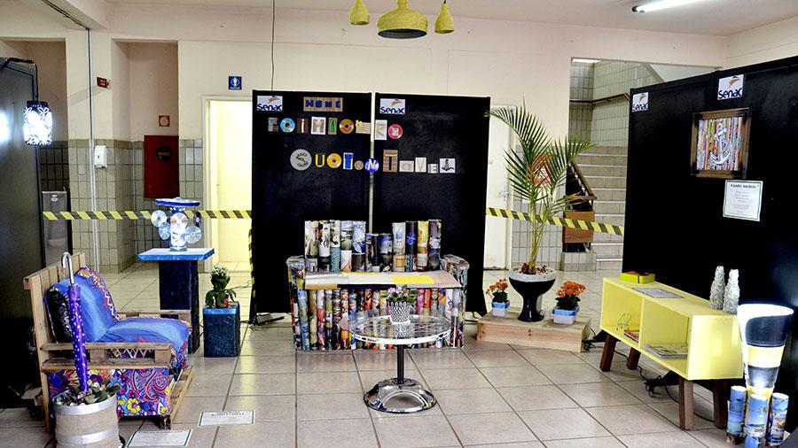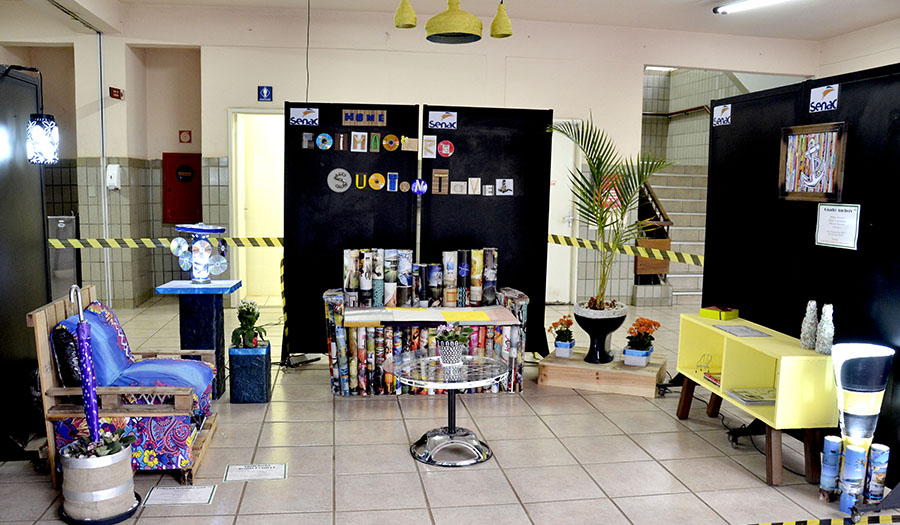 Ivana Paraizo, estagiária de Relações PúblicasPara começar a primavera com muita criatividade e inspiração, os alunos do curso técnico de Design de Interiores do Senac Elias Bufáiçal criaram um ambiente inspirado nas tendências da nova estação. O ambiente composto com sofá, poltrona, mesa de centro, luminárias e quadros, foram produzidos com materiais recicláveis: pallets, jornais, papelão, caixas e outros objetos não mais utilizados. Além de economizar na mobília o mais importante é reaproveitar resíduos que provavelmente iriam para o lixo,orienta o Simpósio Brasileiro de Design Sustentável (SBDS).
