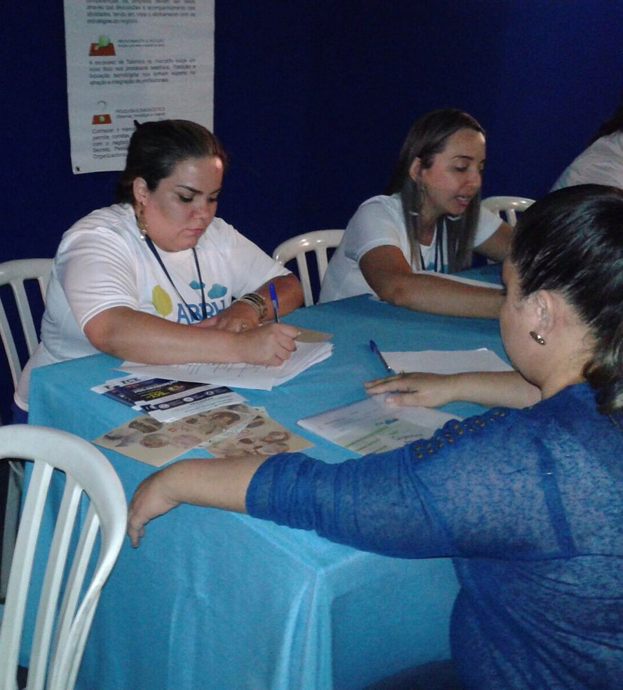 Alunos do Senac Aparecida de Goiânia se voluntariaram para oferecer serviços de orientação curricular e apresentação de vagas e currículos para participantes de evento social da Associação Brasileira de Recursos Humanos.
