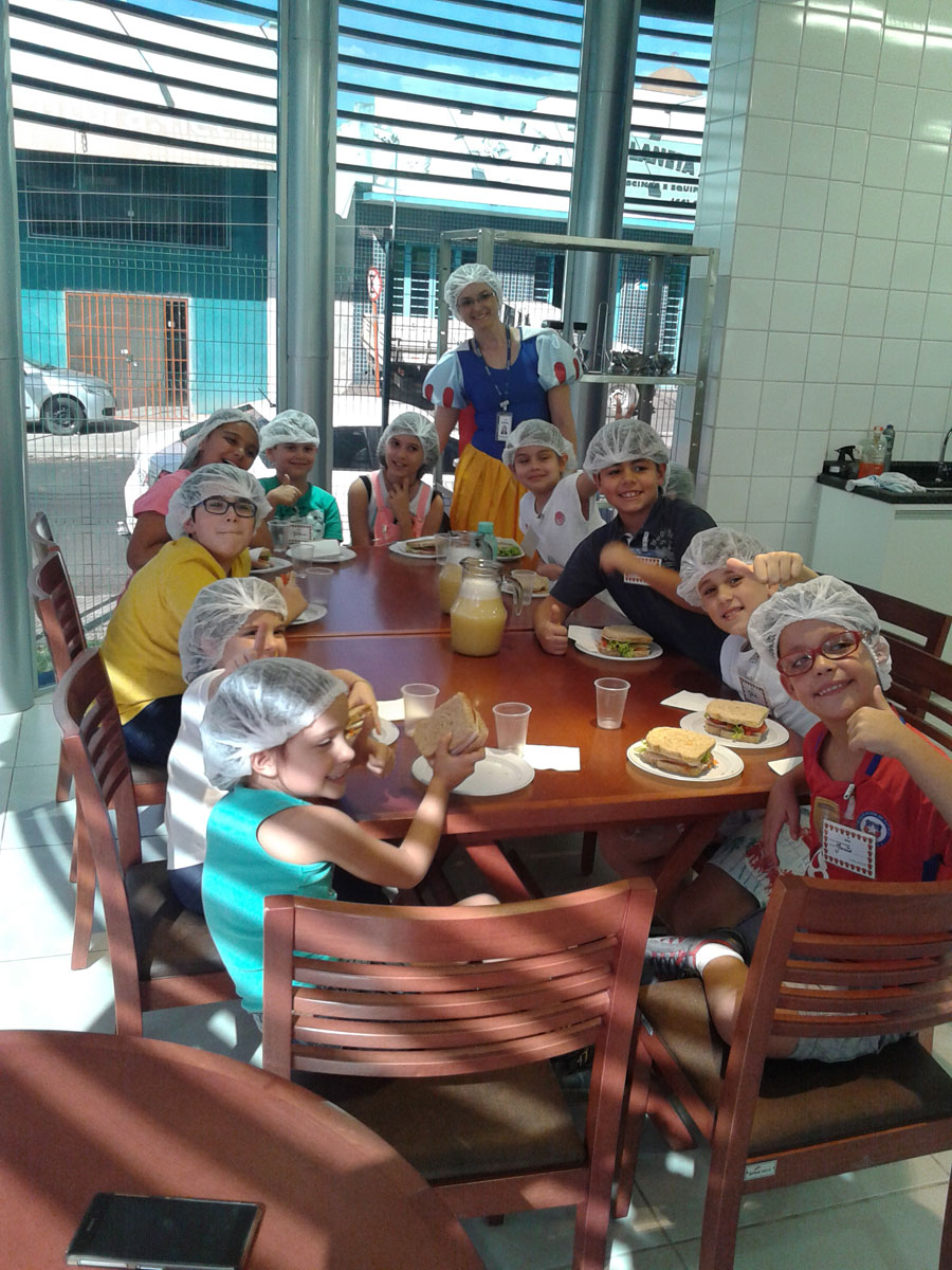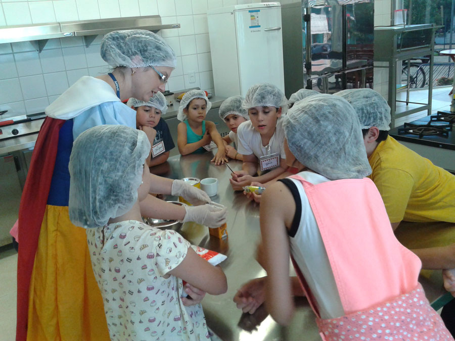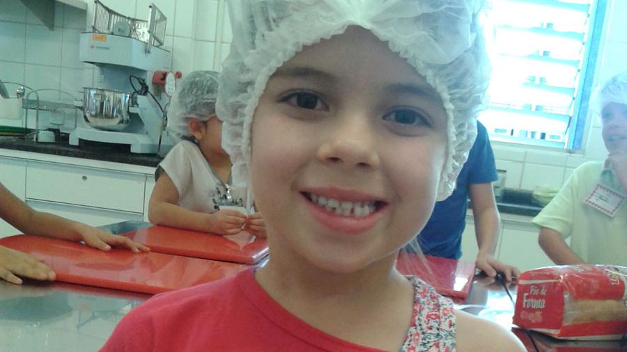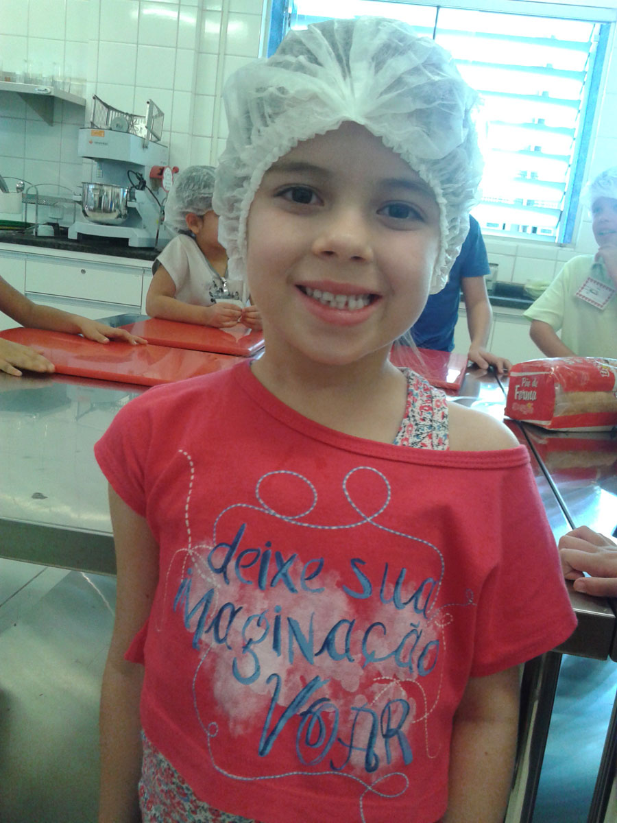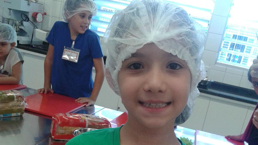 “A gente aprende a cozinhar, e é muito legal. Eu fiz um sanduíche natural e doce de leite ninho. Eu me diverti muito aqui”, afirma Maria Fernanda Goulart, 6.