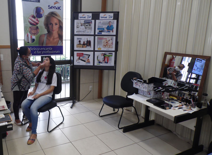 A estudante Emilly Silva Marcelo visitou o estande do Senac e participou do atendimento de maquiagem. “Eu sempre tive muito interesse na área de beleza e fiquei maravilhada com a qualidade do serviço oferecido pelas alunas. Essa foi uma oportunidade para a comunidade conhecer o trabalho delas e um pouco mais sobre os cursos que são oferecidos”, ressalta.