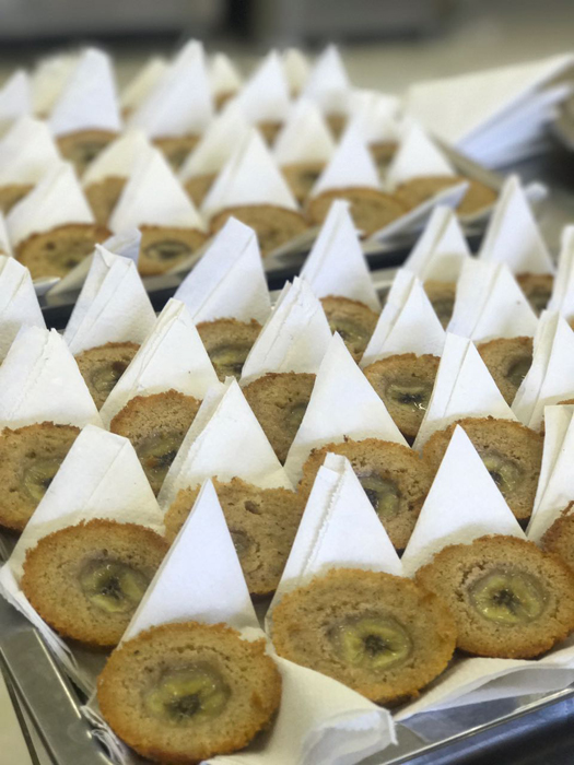 A aluna Alexandra Ramos, relata a alegria de poder colocar em prática tudo que viveu durante o curso “a minha experiência em relação ao dia de hoje é uma receita que eu mesma criei, com a união de vários ingredientes, é um bolo light e sem glúten e também o brigadeiro de casca de banana que é tanto light quanto diet”.