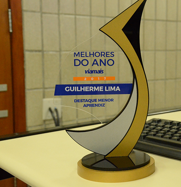 O jovem aprendiz Guilherme Santos, com 17 anos já conquista vitória e sucesso. Guilherme, trabalha na empresa Via Mais Telemarketing, que anualmente premia os seus melhores funcionários de diversos setores. E o Guilherme foi um dos premiados em 2017.