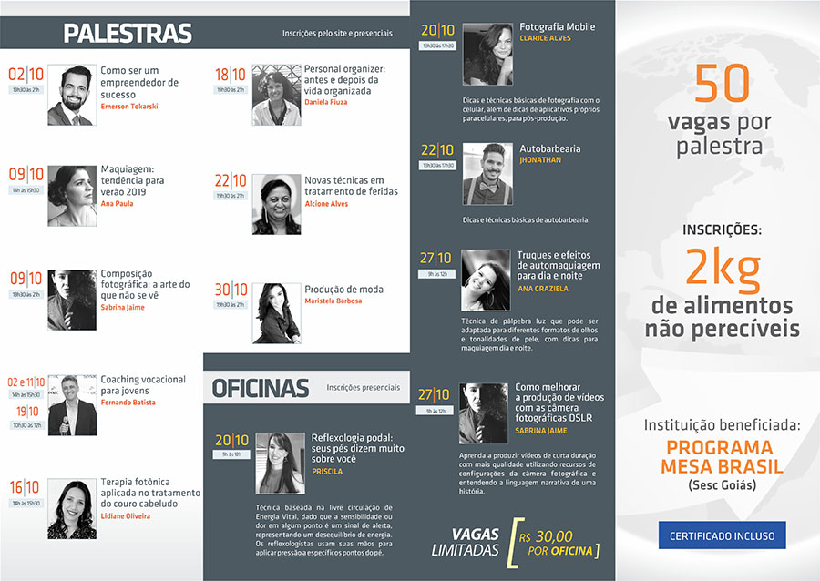 O evento acontecerá de 02 a 31 de outubro na unidade do Setor Aeroporto, e contará com palestras gratuitas e oficinas.