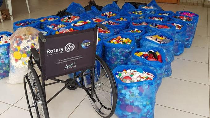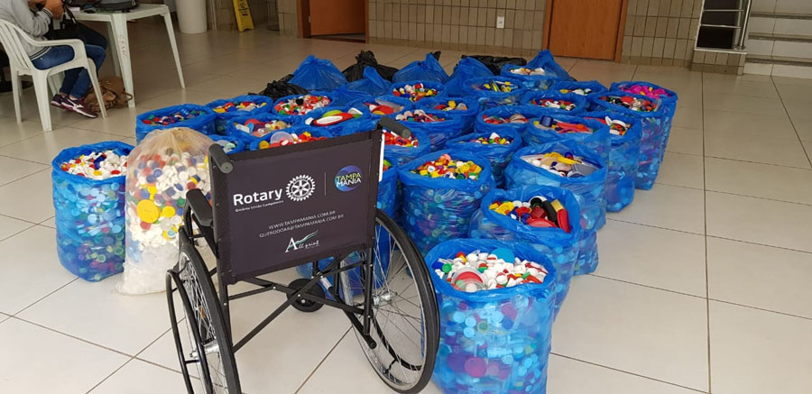 O projeto Tampamania consiste em retirar do meio ambiente as tampas plásticas em geral, sejam elas de garrafas pets, refrigerantes, água, iogurte, shampoo, amaciantes, etc. Com o valor obtido da venda das recicladoras, são compradas cadeiras de rodas, andadores, muletas e fraldões geriátricos aos necessitados e cadastrados nos Clubes de Rotary do distrito 4530.