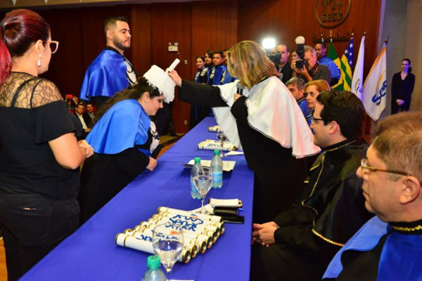 Os canudos foram entregues pela diretora da Faculdade Senac Goiás, Lívia Costa de Andrade; diretor regional do Sesc Senac Goiás, Leopoldo Veiga Jardim; diretora educacional da instituição, Márcia Pereira Carvalho; presidente do Sindicato das Empresas de Informática, Telecomunicações e Similares no Estado de Goiás, Marco César Chaul; coordenador dos cursos superiores de Design Gráfico, Gestão da Tecnologia da Informação, Jogos Digitais e Segurança da Informação, Marcos Costa de Freitas e o coordenador dos cursos superiores de Gestão Comercial, Logística e Estética e Cosmética, Ronaldo de Oliveira.