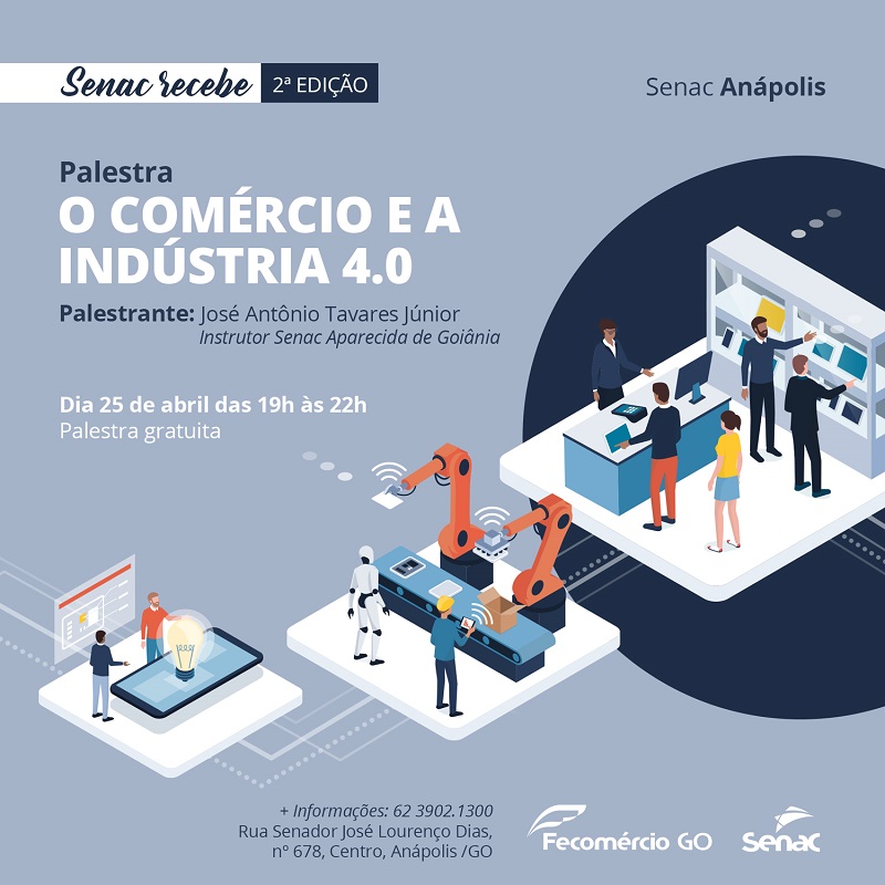 Para debater a extensão e importância desta indústria, o Senac Anápolis promove no dia 25 de abril a palestra: O comércio e a indústria 4.0. O Gestor José Antônio Tavares Júnior, instrutor do Senac Aparecida será responsável pela exposição das ideias. A entrada é gratuita. Inscreva-se!