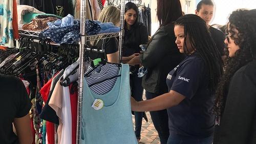 Senac GoiásNesta segunda-feira (24), a calçada da unidade Senac Setor Aeroporto, serviu de passarela para o Fashion Day. Organizado pela turma de Técnico em Produção da Escola de Moda do Senac, o evento foi pensando com o intuito de estimular para o uso sustentável por meio de um brechó, contando ainda com a parceria das turmas de Consultoria de Imagem, Beleza, Fotografia e de Jovens Aprendizes, que foram responsáveis pelo estande de alimentação.