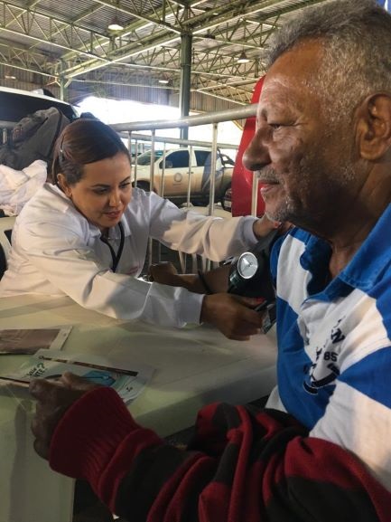 no evento, oferecendo cortes de cabelo e barba, manicure, aferição de pressão e
