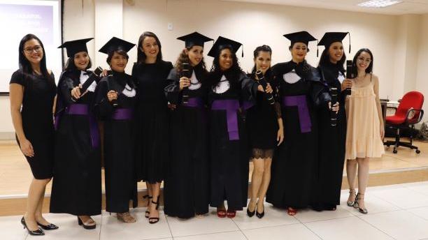 em uma solenidade de formatura, no Espaço Cultural da unidade. O curso foi