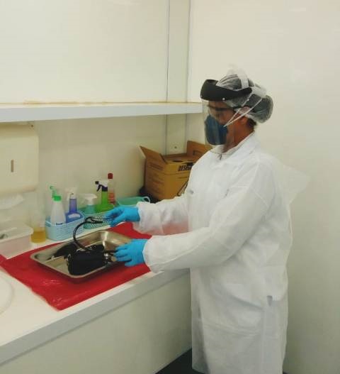 “Na verdade eu não sei se essa é realmente a palavra certa, porque o paciente fica o tempo todo em isolamento e nós precisamos assistir ele, mas para isso, a cada vez que vamos ao quarto onde ele está, precisamos colocar as EPIs (Equipamento de Proteção Individual) que levam em torno de uns dez minutos para ser colocados corretamente. Isso é feito a cada paciente assistido, várias vezes ao dia. Um cuidado que leva tempo e atenção”, destacou Sumara.