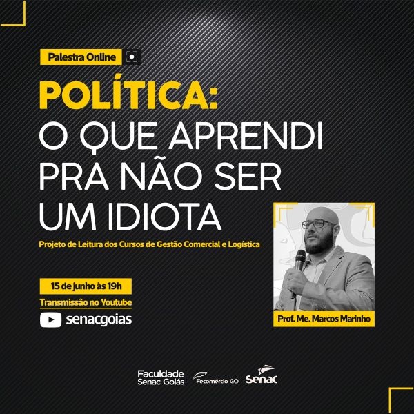 no dia 15 de junho, às 19h, uma palestra on-line com o tema “Política: o que