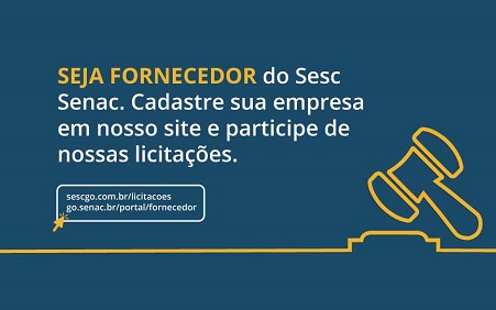Senac GoiásVocê pode ser um dos fornecedores do Sesc e do Senac! Basta cadastrar sua empresa em nosso site e participar das nossas licitações.