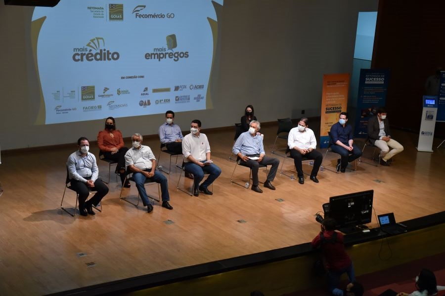 Ronaldo Caiado; o presidente da Fecomércio, Marcelo Baiocchi; o