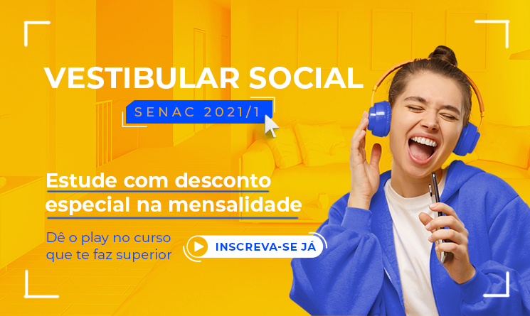 Senac GoiásA Faculdade Senac irá realizar o Programa de Vestibular Social, no qual serão oferecidas bolsas de até 100% para novos alunos. O edital com todos requisitos para participar do processo e a página para inscrição estão disponíveis nos sites www.go.senac.br; www.go.senac.br/faculdade ou www.go.senac.br/vestibular. O período de inscrições vai até o dia 31 de março.