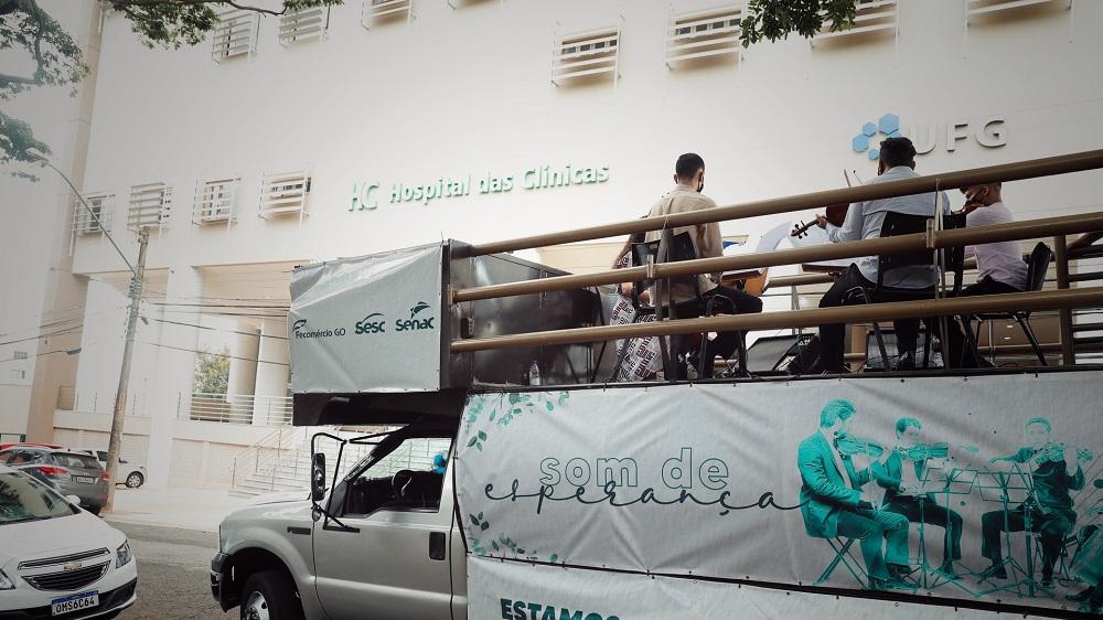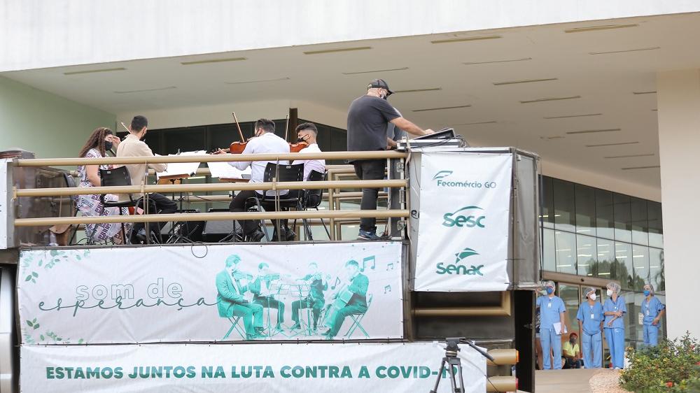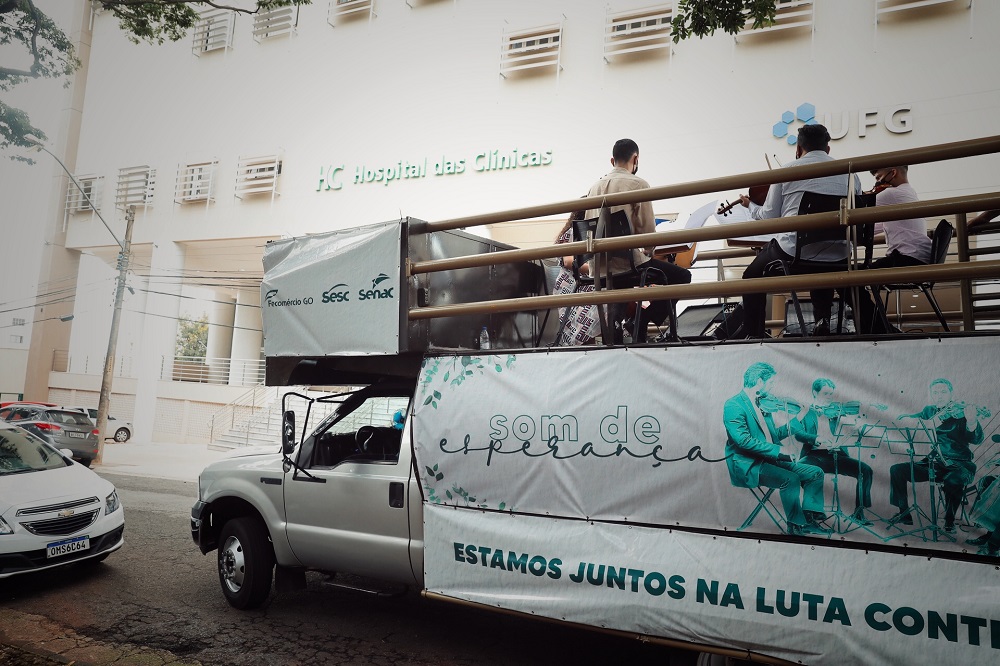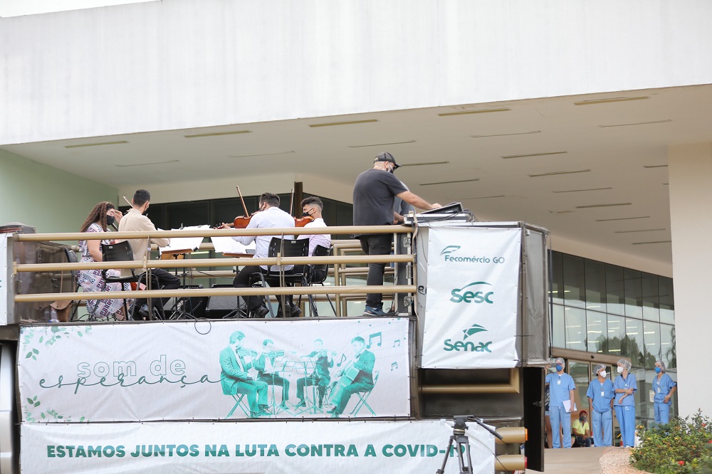 Senac GoiásNo último sábado, dia 3 de abril, véspera da Páscoa, o Sesc e o Senac levaram o Quarteto de Cordas da Orquestra Sinfônica Jovem de Goiás (OSJ) para tocar em frente a hospitais de Goiânia que estão tratando pacientes da Covid-19. A ação Som da Esperança quis levar esse sentimento aos corações dos pacientes, familiares e profissionais que atuam na linha de frente.