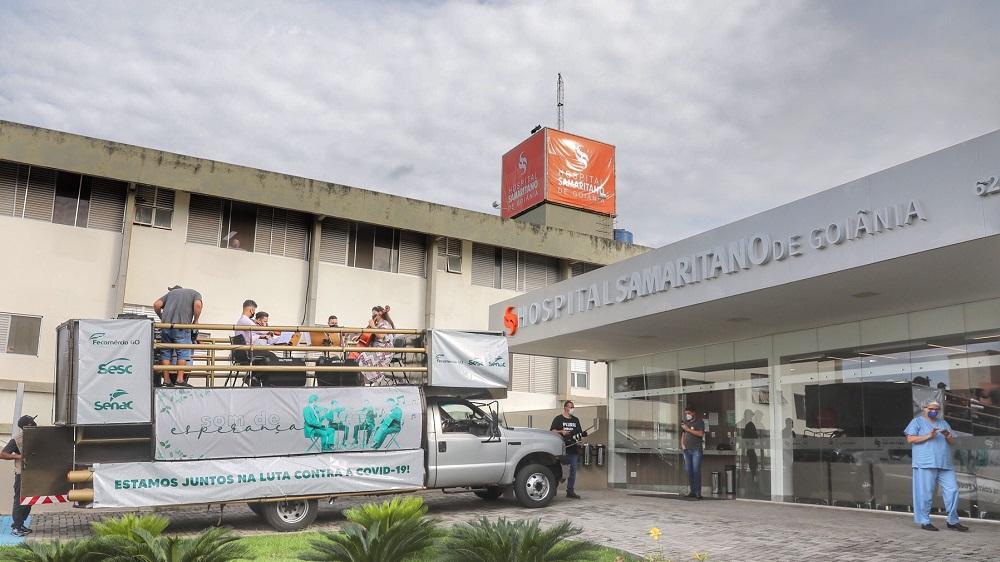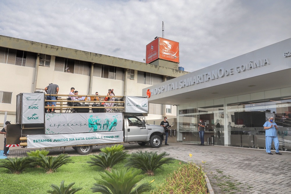 Ação Som da Esperança aconteceu em frente a quatro hospitais de Goiânia no dia 3 de abril, sábado de Páscoa