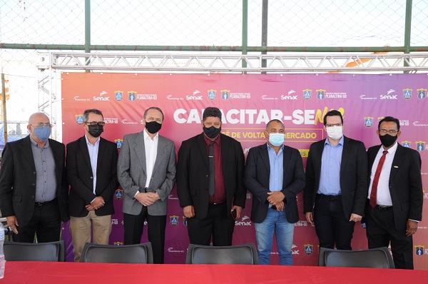 Senac GoiásO Sistema Fecomércio Sesc-Senac lançou nesta quarta-feira (14) o projeto Capacitar-se no município de Planaltina de Goiás, em parceria com a Prefeitura Municipal. A cerimônia contou com a presença do vice-presidente da Fecomércio, Ademildo Godoy, o diretor regional do Sesc-Senac, Leopoldo Veiga Jardim, o prefeito Cristiomário de Sousa, além dos presidentes de diversos sindicatos patronais; Zenildo Dias do Vale (sinergás), Silvio Carlos Yassunaga Brito (sindiaçougue), Marcelino Vitor Lucena (sindibeleza), José Geraldo Correa Roque (sindióptica), Nilson Castro Marinho (sinfac), Geraldo Dias Filho (sindimóveis), Idelton Gomes da Silva (sindego), Divino Eterno dos Santos (sindego) e demais diretores do Sistema Fecomércio.