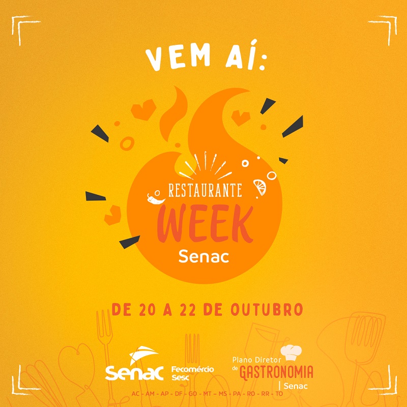 Senac GoiásA Escola de Gastronomia do Senac apresenta, de 20 a 22 de outubro, o Restaurante Week, uma semana inteira de muito conhecimento para os profissionais do ramo.