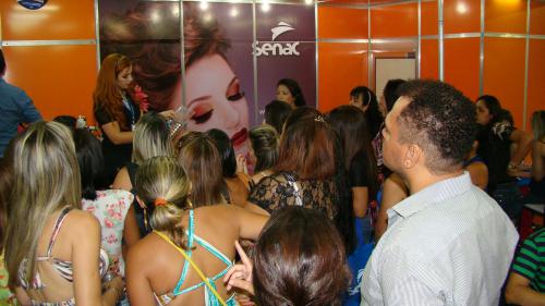 O Senac está com um estande e realiza oficinas com temas: Maquiagem Cut Crease, Visagismo, Tendências e Técnicas de corte, Maquiagem para eventos e noivas, Depilação com linha, entre outras.